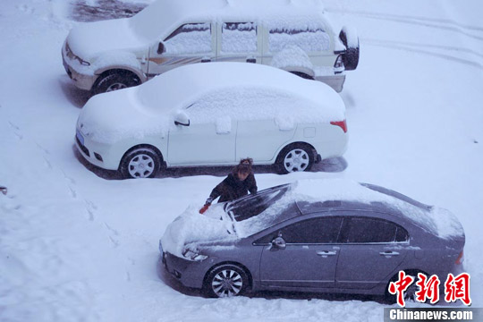参与互动(0) 2月22日清晨,新疆乌鲁木齐被白雪覆盖,令已感到春天气息的市民再回到白雪皑皑的冬日。图为市民清理私家车积雪,准备出行。刘新 摄