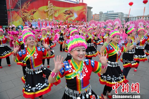 参与互动(0) 2月23日农历二月初二,河北省博物馆广场上演“千人大比舞”,舞会有工人、学生、士兵、退休老人等社会各阶层2000余“舞林高手”参加,其中年龄最大的70岁,最小的仅4岁。中新社记者 翟羽佳 摄