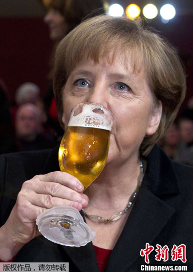 德国政党庆祝圣灰日 默克尔“豪饮”啤酒