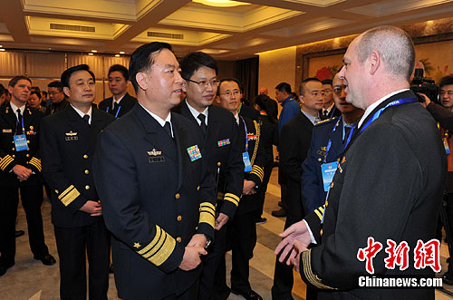 参与互动(0)由中国海军发起和举办的首次国际护航研讨会,2月23日上午在南京海军指挥学院开幕。来自欧盟、北约、多国海上力量、波罗的海国际航运公会等4个国际组织,以及美、英、法、德、中等20个国家的84名代表,分享海上护航经验,探讨深化合作的内容和方式。此次研讨会为期两天,围绕海盗形势和情报信息工作、武力解救经验、海上兵力行动组织、护航法律和护航保障等问题进行交流和研讨,举行4场大会交流和专业研讨。中国海军副司令员丁一平中将(左三)出席开幕式并致辞。图为丁一平中将与参会外方人员交谈。中新社发 莫小亮 摄