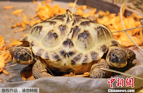 参与互动(0) 2012年3月5日,在乌克兰基辅的国家历史博物馆里,工作人员展示一只双头乌龟,这只乌龟的品种为四爪陆龟。