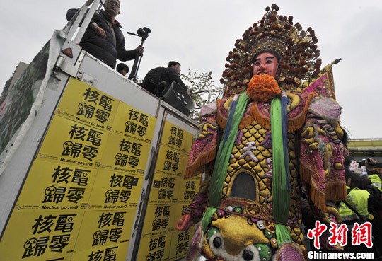 参与互动(0)图为民间艺人以古代武将形象加入反核大游行队伍。中新社记者 贾国荣 摄