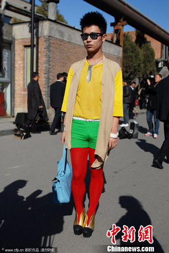 参与互动(0) 2012年3月24日,北京,梅赛德斯-奔驰中国国际时装周(2012/2013秋冬系列)在798开幕,吸引了不少潮人,当然也有不乏雷人穿着。麦田 摄 图片来源:CFP视觉中国