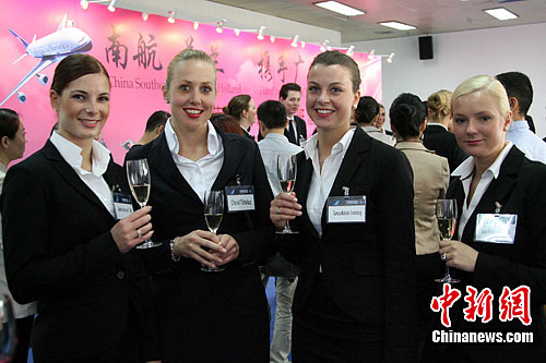 参与互动(0) 3月27日,中国南方航空公司首批21名荷兰籍乘务员在位于广州的南航培训部举行了开班酒会。在3月28日至5月9日期间,这批乘务员将在南航培训部完成14门课程,236学时的培训。培训结束后,他们主要执行广州到荷兰之间的航班飞行任务。中新社发 林宇定 摄