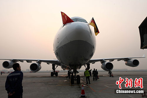 参与互动(0) 3月27日17:25分,由德国汉莎航空公司执飞的空客A340-300大型宽体客机降落在青岛机场,这标志着山东首条通往欧洲的客运航线正式开通。中新社发 徐崇德 摄
