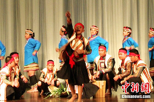 参与互动(0) 4月18日晚,“两岸情·台湾原住民小学传统歌谣会”在南京大学大礼堂拉开帷幕。图为歌唱丰收的喜悦。吴瞳 摄