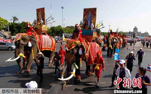 泰国街头上演大象游行 庆祝国际劳动节(2)