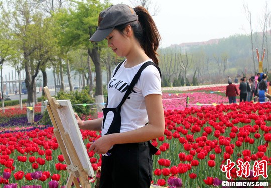烟台四万株郁金香盛开 民众花海赏春