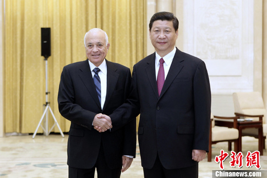 5月8日,中国国家副主席习近平在北京人民大会堂会见阿拉伯联盟秘书长阿拉比。中新社发 盛佳鹏 摄