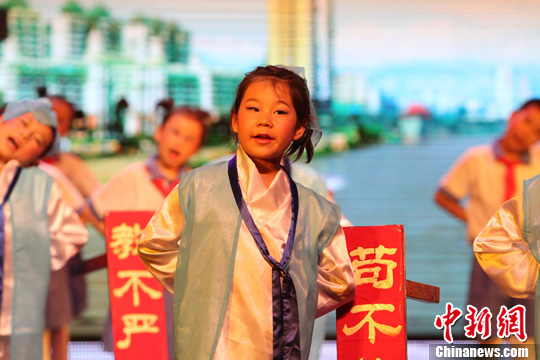 孩子们表演节目《三字经》。崔琳 摄