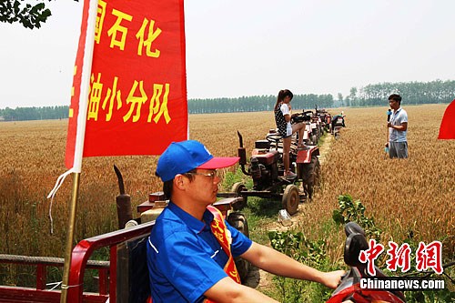 美女记者站拖拉机上进行麦田现场报道(2)