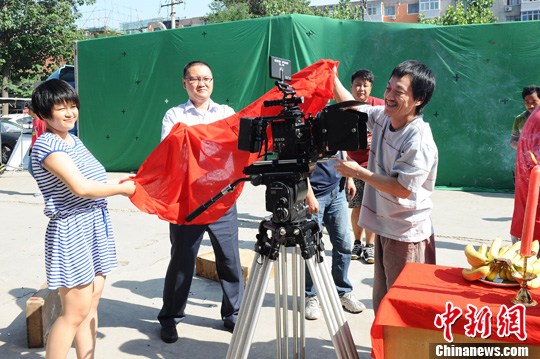 图为雪村夫妇揭幕电影机。中新社发 李学仕 摄