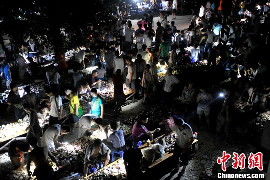7月11日晚,福州民众聚集晋安区樟林村“夜赌”寿山石。中新社发 王东明 摄