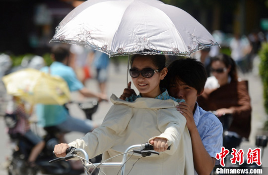江苏发布高温黄色预警 扬州市民“全副武装”抗高温