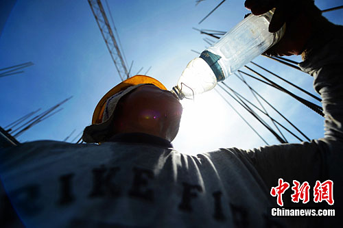 当日中午,在扬州市城北的一处建筑施工工地上许多建设者们顶烈日、战高温,经受着高温“烤”验,奋斗在一线,为扮靓城市挥洒着汗水,他们的身影正成为一道别样的风景线。