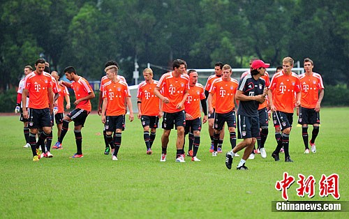 7月26日中午,拜仁慕尼黑足球队在广州天河体育场进行赛前训练,备战当晚举行的奥迪俱乐部杯足球赛。中新社发 柯小军 摄