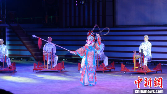 第二届“敦煌行 丝绸之路”国际旅游节“兰州黄河文化旅游节”开幕式《鼓舞中国》文艺晚会7月26日晚在兰州水车博览园激情上演。冯铄淇 摄