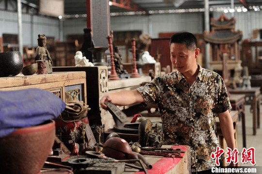 畲族文物收藏“第一人”阮晓东,现任福安市畲族文化研究会副主任。中新社发 郑祚声 摄