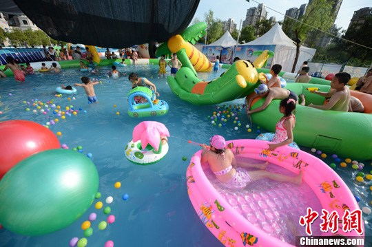 7月29日,连日来,江苏扬州市一直持续高温桑拿天气,当日最高攀升至36℃ ,为了躲避高温酷暑天气,很多儿童通过游泳戏耍的方式,感受清凉与欢乐,尽享童年乐趣。中新社发 孟德龙 摄