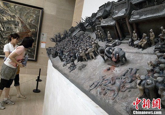 八一建军节前后在北京中国美术馆盛大展出的第十二届全军美展上,成都军区李占洋的作品《刘胡兰》雕塑逼真表现十五岁革命烈女在铡刀下抛头颅、洒热血的场景,给予观众巨大的视觉和心理震撼。中新社发 贾国荣 摄