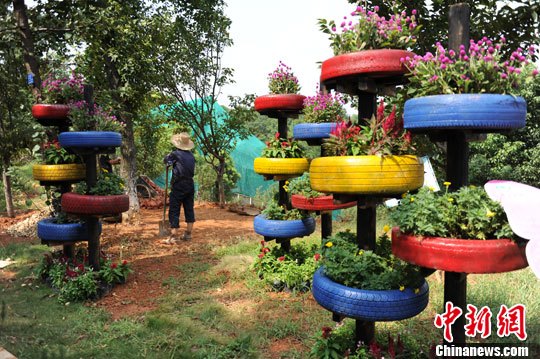 创意轮胎立体式花园。杨华峰 摄