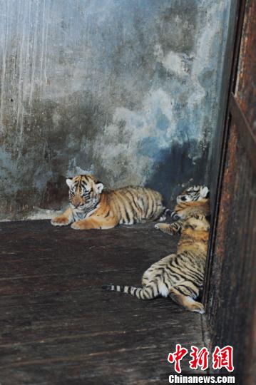 这三只小华南虎生于7月24日凌晨,刚生下来的时候只有500克左右。目前,三只幼虎长势良好,并顺利度过危险期。经过二十多天的细心照料,幼虎的体重已增加到两千克左右。 王剑 摄