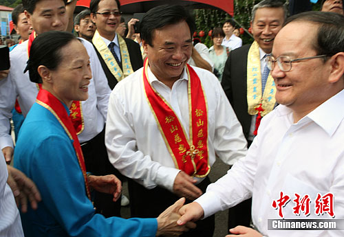 8月22日,正在台湾访问的江西省长鹿心社一行来到台北松山慈惠堂参访,受到慈惠堂主郭叶子等台湾道教界人士的热烈欢迎。鹿心社表示,希望赣台两地加强道教文化交流交往,建立长期化、常态化的交流互访机制。中新社发 郭军 摄