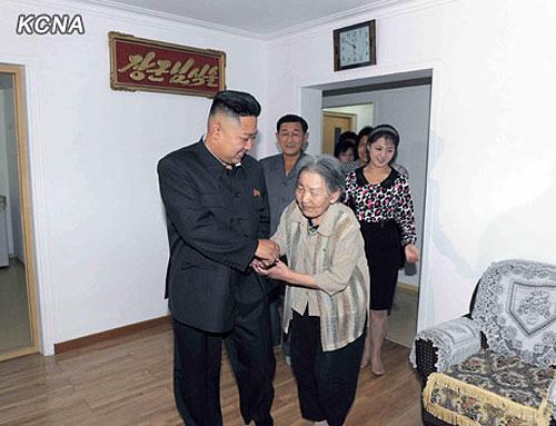 9月4日,朝中社公布照片,朝鲜劳动党第一书记、朝鲜国防委员会第一委员长、朝鲜人民军最高司令官金正恩访问住进仓田街新房的居民家庭,并席地而坐与民众交谈。