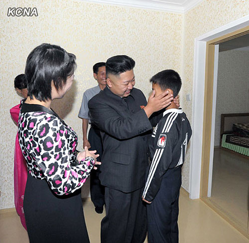 9月4日,朝中社公布照片,朝鲜劳动党第一书记、朝鲜国防委员会第一委员长、朝鲜人民军最高司令官金正恩访问住进仓田街新房的居民家庭,并席地而坐与民众交谈。
