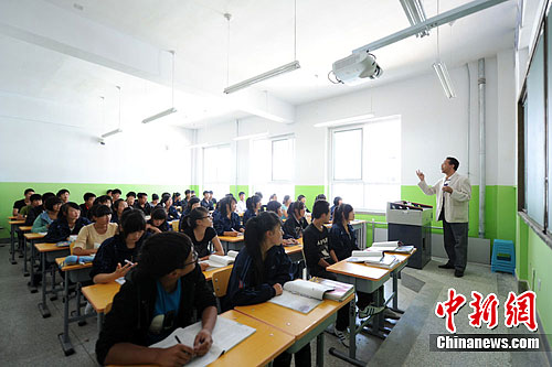 全新的校舍、标准化的塑胶操场、宽敞明亮食堂、可口香甜的饭菜,这是坐落在兰州新区的舟曲中学新面貌。9月6日,兰州新区舟曲中学举行了开学典礼,来自舟曲灾区的孩子们在兰州新区有了自己的新校园。图为宽敞明亮的教室。杨艳敏 摄