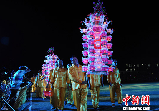 9月8日晚,“2012年海峡客家旅游欢乐节暨客家民俗大汇演活动”在“客家祖地”福建连城开幕。图为客家民俗游花灯表演。胡文 摄