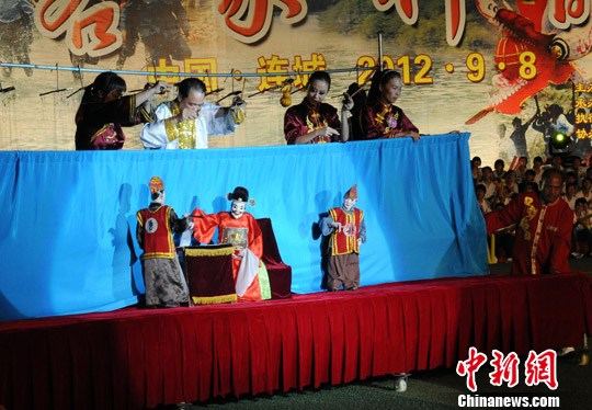 9月8日晚,“2012年海峡客家旅游欢乐节暨客家民俗大汇演活动”在“客家祖地”福建连城开幕。图为客家民俗木偶戏表演。胡文 摄