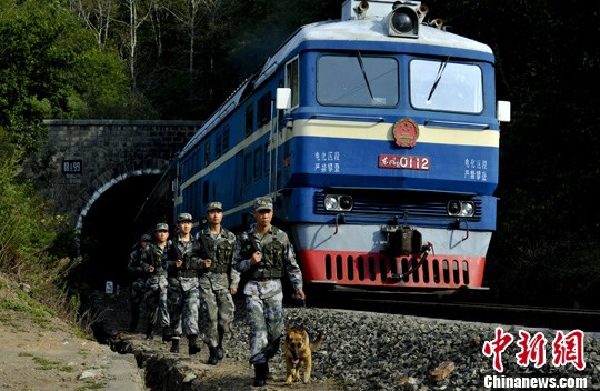 9月11日,黑龙江省军区某边防团三号洞哨所官兵,驻守在绥芬河1899年至1902年开通的中俄边境铁路要塞,常年护卫具有百年历史的两国边境旅客和货运列车畅通无阻。贾国荣 摄