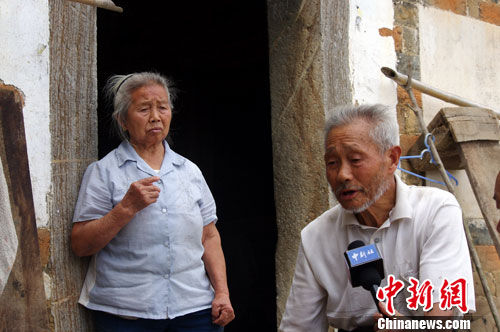 幸存者蔡春华、付双娥夫妇回忆日军屠杀村民的过程,表情异常痛苦。王昊阳 摄