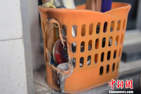 近日,在山西太原闹市居民楼三层居住的杜大爷家频燃“怪火”,墙上挂的钟表、顶柜里放的衣服、床上铺的化纤毯、电线、电脑、冰箱、电视机等无不遭殃。韦亮 摄