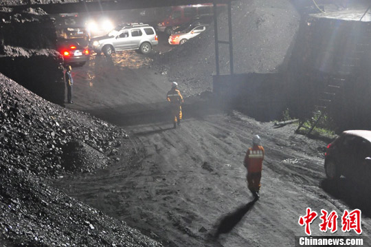 贵州省黔南布依族苗族自治州福泉市龙昌镇谷坝煤矿11日发生煤矿透水事故,据初步统计,事故发生时共有41人在井下作业,其中33人安全升井,有8人被困井下。中新社发 周昊 摄