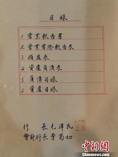 中华苏维埃共和国国家银行的清单,上有行长毛泽民的签名与印章。 钟升 摄