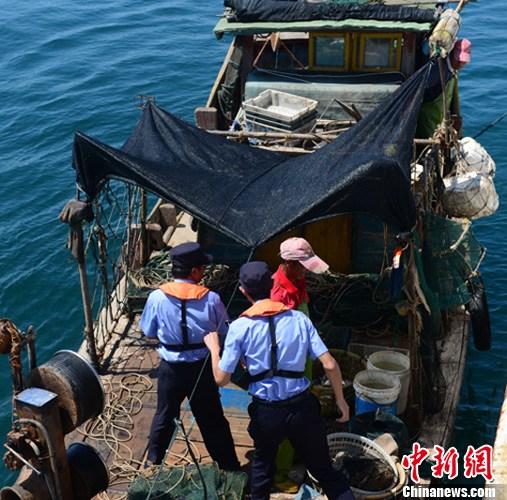 图为当日福州市海监支队执法人员进行执法。中新社发 王海平 摄