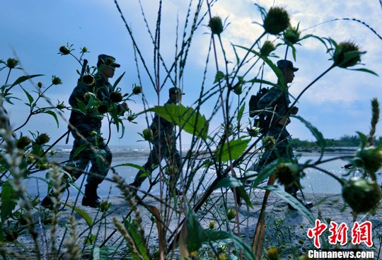 9月12日,黑龙江省军区某边防团五连档壁镇哨所巡逻兵,在中俄边境的亚洲最大界湖——兴凯湖畔戍边,中国一侧已经成为著名的风景旅游区。贾国荣 摄