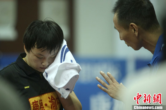 教练正在给比赛选手讲解比赛技巧。陈超 摄