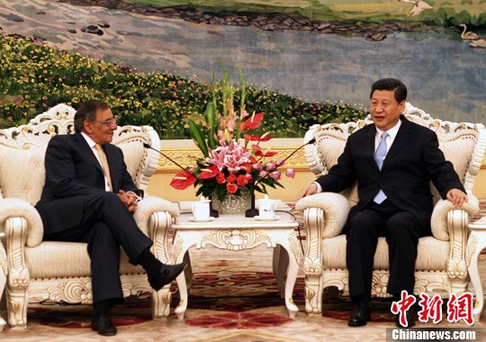 9月19日上午,中国国家副主席、中央军委副主席习近平,在北京人民大会堂会见来访的美国国防部长帕内塔。中新社发 宋吉河 摄