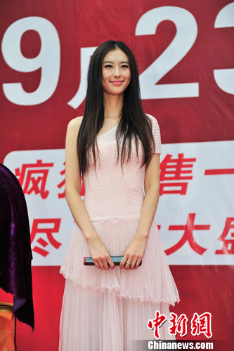 9月23日,被称为中国第一车模的“兽兽”翟凌亮相海口,参加某商业活动。 中新社发 骆云飞 摄