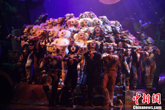16日晚,音乐剧《猫》中文版西安开演,2008年,英文原版《猫》首次登陆西安时曾创造单日售票额超10万元人民币的票房佳绩。中新社发 张一辰 摄