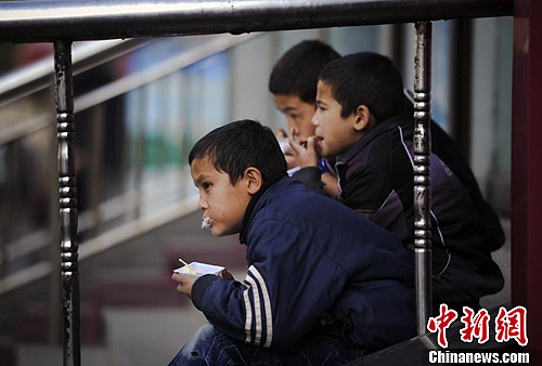 过节始终是孩子的最爱,几个维吾尔族小朋友聚在一起品尝龙须酥。刘新 摄