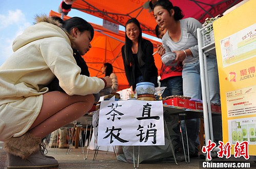 图为一位来自西双版纳的学生练摊售卖自家种的普洱茶很受欢迎。中新社发 任东 摄