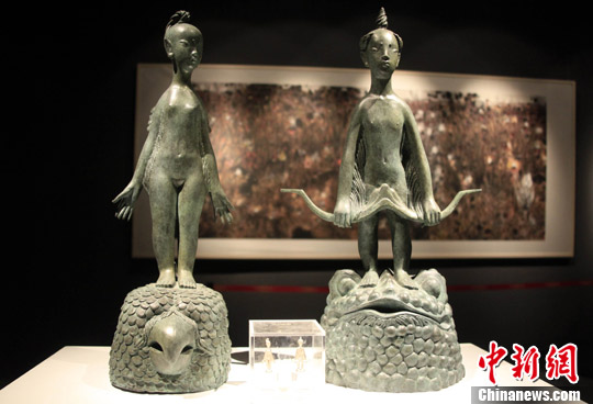图为中国参展的以青铜、银制成的作品“传奇2011”。中新社发 孙自法 摄