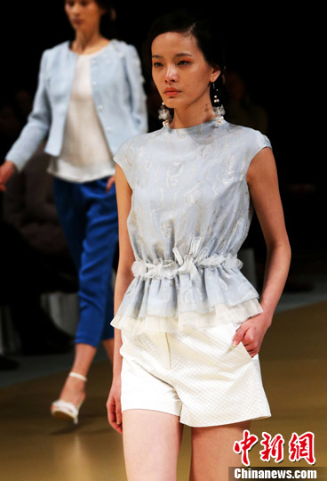 11月1日晚,中国国际时装周(2013春夏系列)举行“时尚新古典”赵卉洲作品发布会。图为模特展示赵卉洲发布会作品。中新社发 钱兴强 摄
