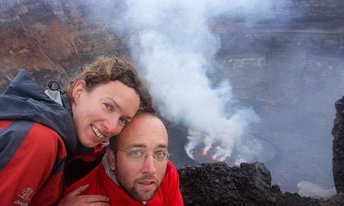 据介绍,目前在卢旺达工作的37岁摄影师盖伊•戴克瓦(Guy Dekelver),和35岁的女友一同抵达刚果民主共和国境内的尼拉贡戈火山脚下,在经过一天的徒步攀登后,最终登上了海拔3470米高的火山顶部。就在两人为眼前的壮丽美景感到震撼之际,盖伊突然开口向女友瑟特斯克•万•波尔海斯特(Sietske van Poelgeest)求婚,波尔海斯特随即爽快地答应了。