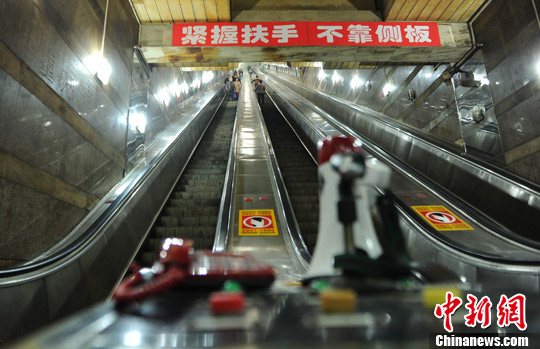 11月15日,重庆市民正在搭乘扶梯超长扶梯。中新社发 陈超 摄