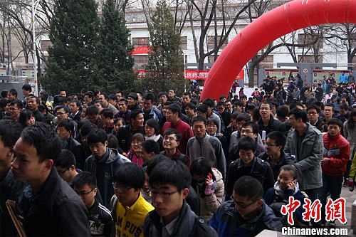 图为大批学生涌入招聘会现场。刘佳 摄